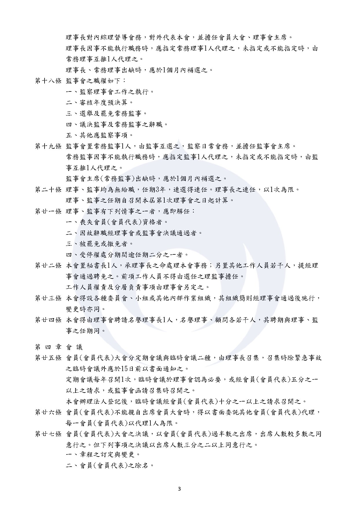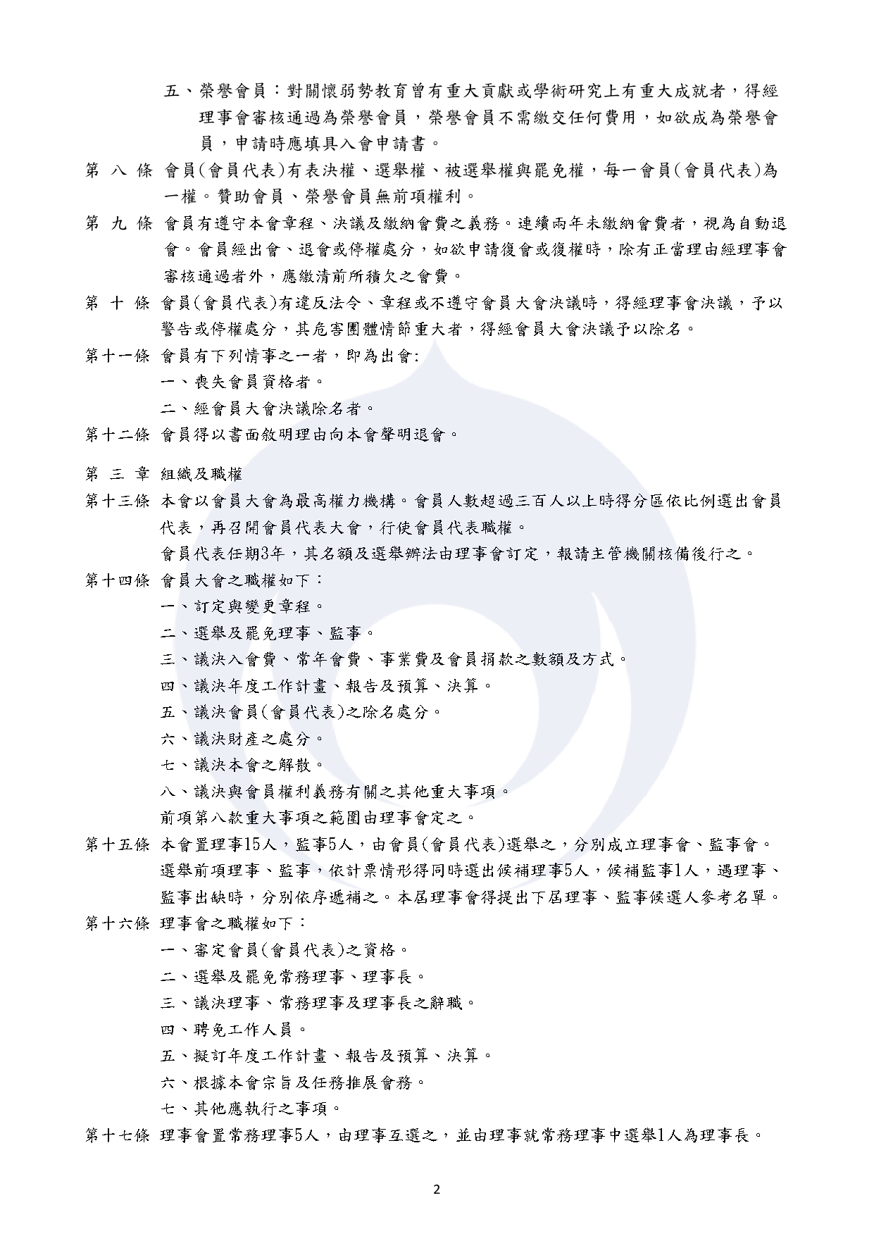 本會秘書處置專職工作人員2位,承理事長之命處理本會事務。