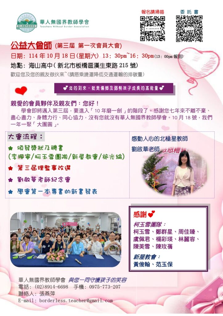 「無國界教師學會」在2018年成立,也期待使不分性別、種族、家庭背景、聰明才智的人,都能獲得教育機會公平及可負擔的優質教育。尤其是要扶助弱勢族群,如:身心障礙、原住民、新住民、弱勢孩童,能擁有平等的教育資源。也就是2015年聯合國提出的17項「永續發展目標」,其中的第四項「優質教育」。