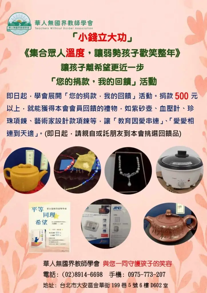 美國詩人佛羅斯特有一首著名的詩–「未行之路」:「樹林中分出了兩條岔路,我選了人煙罕至的一條,造就一切的改變。」「華人無國界教師學會」也選擇了一條人煙罕至的路,服務「偏鄉及非山非市學校」及家庭不幸、身心障礙的孩子,希望造就一切的改變。