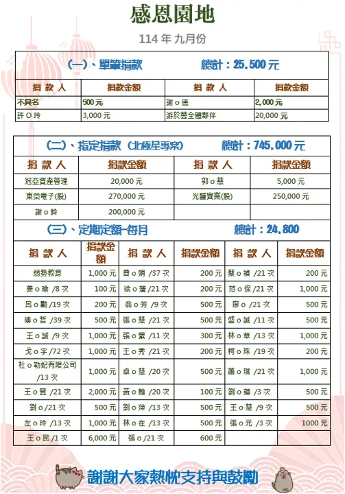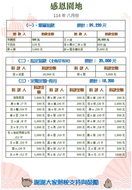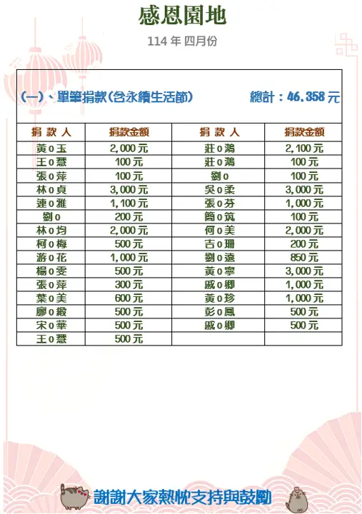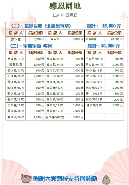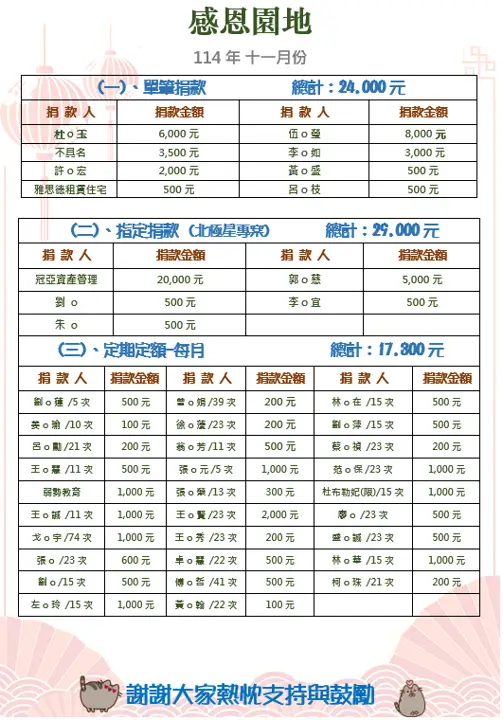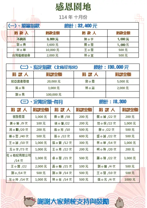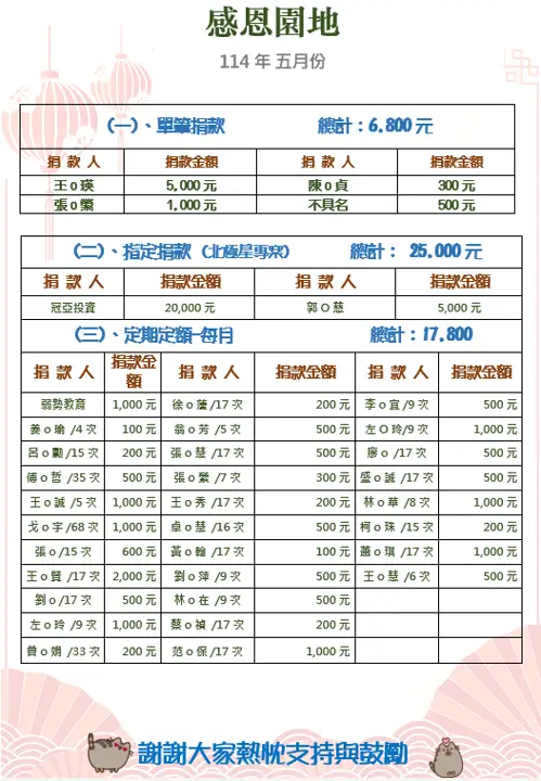 感謝宋瓊華理事推動,不少「定期定額捐款」進入。感謝理監事們持續引進企業大筆贊助,讓我們有勇氣大步向前。感謝會員一起成為「推動教育公平的舵手」,因為「雁行」而能「遠行」。